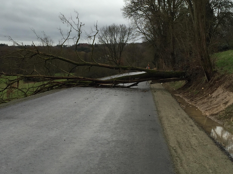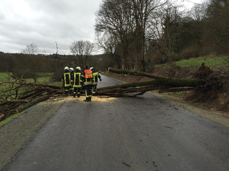 Baum über Fahrbahn gestürzt