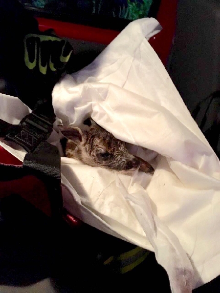 eines alten Mühlrades gestürzten Rehkitz. Es grenzte an ein Wunder das sich das
